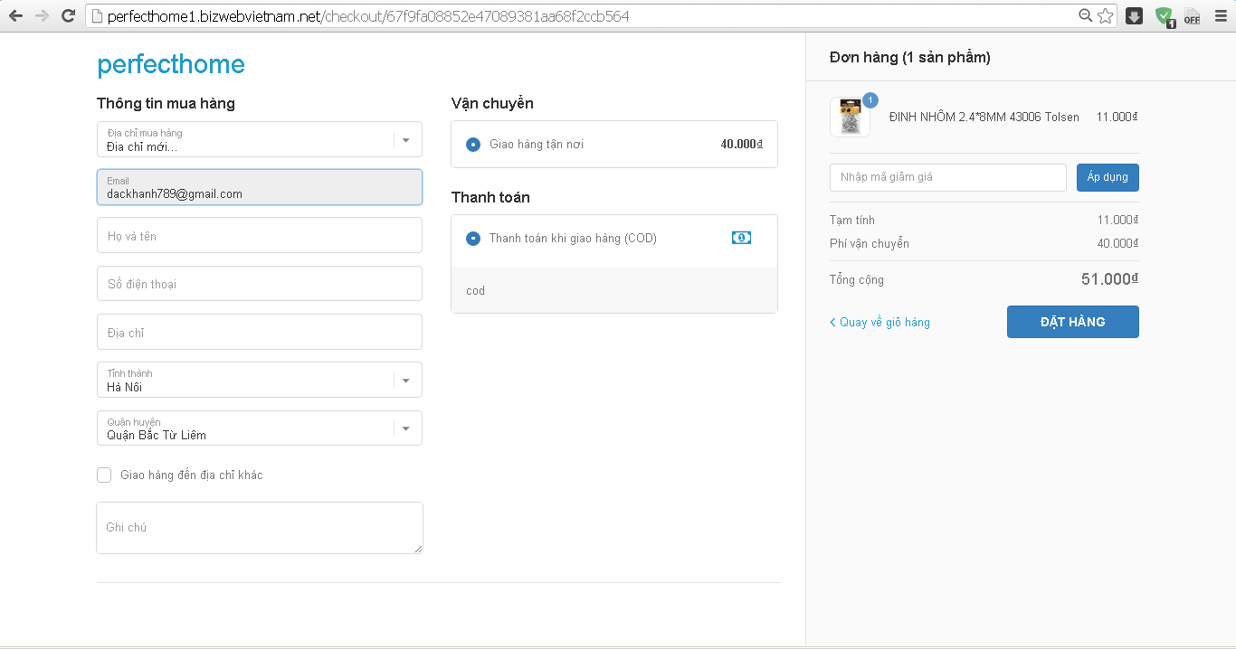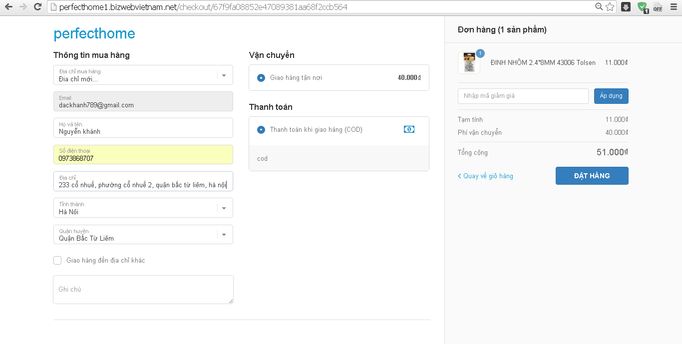 Cách 3: Đặt mua hàng trên website www.Perfecthome.vn