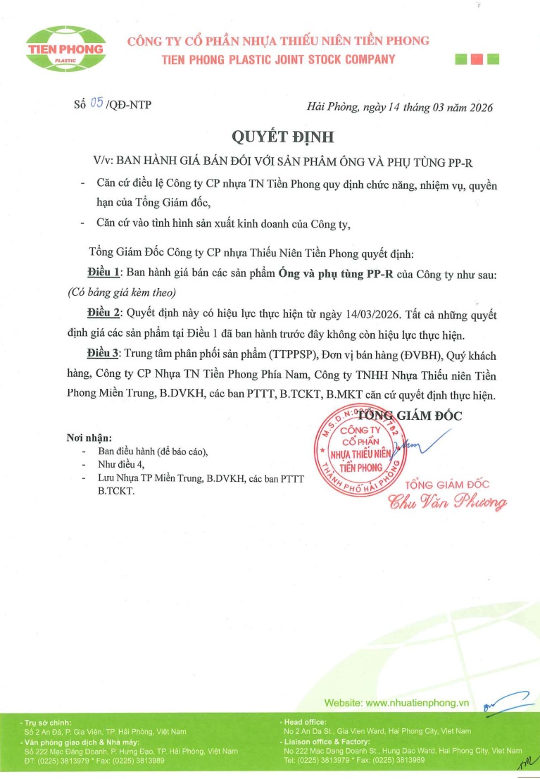 Thông báo tăng giá PPR của Tiền Phong