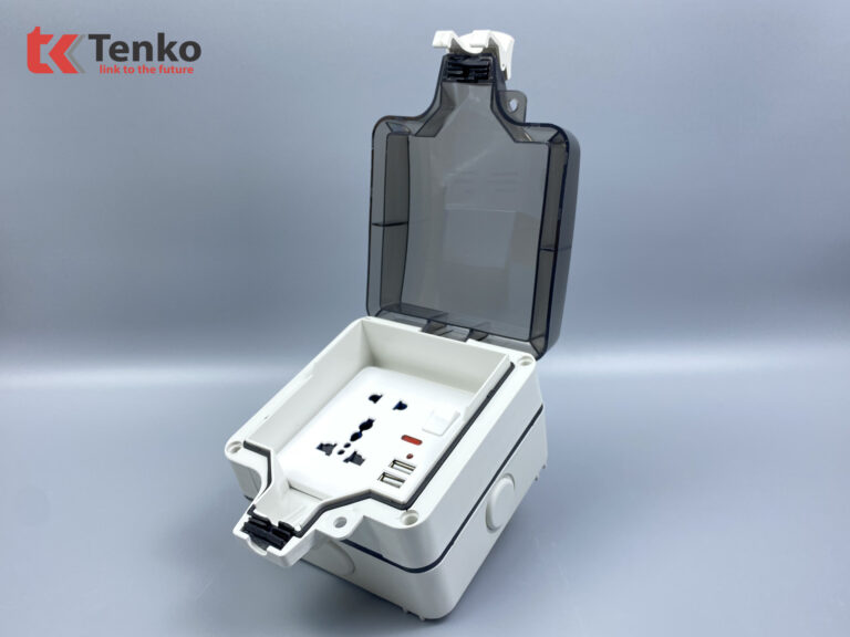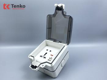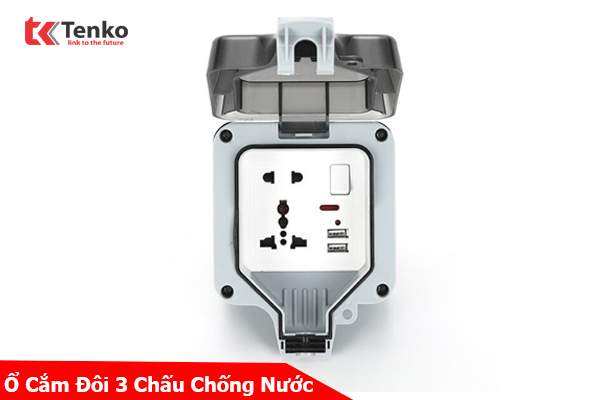 Ổ cắm đôi 3 chấu có công tắc và USB chống nước Tenko TK-IP66-03