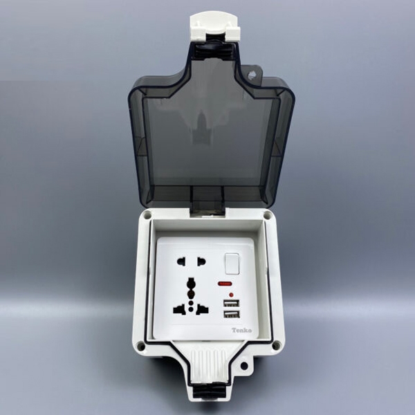 Ổ cắm đôi 3 chấu có công tắc và USB chống nước Tenko TK-IP66-03