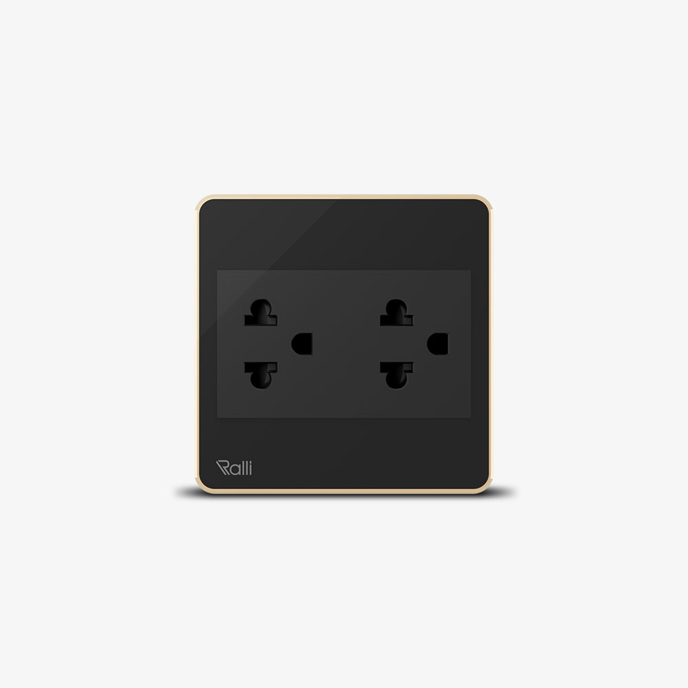 Ổ cắm điện âm tường cao cấp Rạng Đông OCAT05K 2 ổ cắm 16A, 2 màu Trắng/ Đen.
