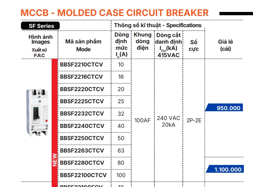 Cầu dao đóng ngắt mạch điện MCCB Panasonic BBSF2280CTCV /BBSF22100CTCV